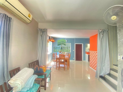 ตกแต่ง : ทาวน์เฮ้าส์ 2 ชั้น หน้ากว้าง 5.7 เมตร พื้นที่ใช้สอย 139 ตร.ม ตัวบ้านโล่ง โปร่ง จัดสรรพื้นที่ใช้สอยได้อย่างลงตัว ชั้นล่างปูพื้นกระเบื้องแกรนิตโต้อย่างดี ชั้นบนพื้นลามิเนต ต่อเติมห้องครัว บิวอินท์เคาน์เตอร์ครัว อ่าง ซิ้งค์ ล้างจาน ตู้เก็บอุปกรณ์ ด้านข้างบ้านมีการต่อเติม ตกแต่งเป็นมุมสำหรับนั่งทานอาหารมื้อเย็น บริเวณหน้าบ้านต่อเติมโรงรถ จอดรถได้ 1 คัน บ้านดี พร้อมอยู่