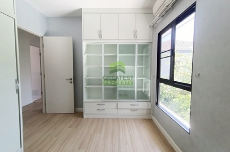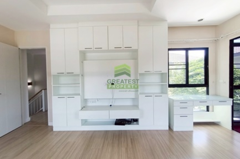ราคาขาย : 8,700,000 บาท เหลือเพียง 7,800,000 บาท ตกแต่ง : บ้านเดี่ยว 2 ชั้น พื้นที่ใช้สอย 162 ตร.ม หน้าบ้านหันทิศใต้ พื้นชั้นล่างปูกระเบื้องแกรนิตโต้สีครีมทำความสะอาดง่าย บิ้วท์อินเคาน์เตอร์บาร์ ตู้เก็บของพร้อม storage bench อย่างลงตัว สำหรับมุมนั่งเล่น และมุมโต๊ะอาหาร ครัวบิ้วอินท์สวย พร้อมใช้งาน ไม่ว่าจะเป็นเคาน์เตอร์ครัว ซิงค์ล้างจาน ตู้แขวนเก็บอุปกรณ์ เตาไฟฟ้า เครื่องดูดควัน เครื่องกรองน้ำ ชั้นบนพื้นลามิเนต บันไดพื้นไม้จริง สวย แข็งแรง ห้องนอนใหญ่ตกแต่งบิ้วท์อิน ตู้โชว์ชั้นวางทีวี โต๊ะเครื่องแป้ง ตู้เสื้อผ้า แบ่งโซนห้องแต่งตัว ทุกห้องติดวอลเปเปอร์ลวดลายเบาบางสีอ่อนสบายตา บ้านโล่ง โปร่ง ไม่ร้อน มีหน้าต่างทุกห้อง อากาศถ่ายเทดี ต่อเติมหลังคา-ปูกระเบื้องพื้นที่จอดรถหน้าบ้าน บริเวณบ้านร่มรื่น ด้วยต้นไม้น้อยใหญ่ บ้านสวย แต่งครบ พร้อมอยู่