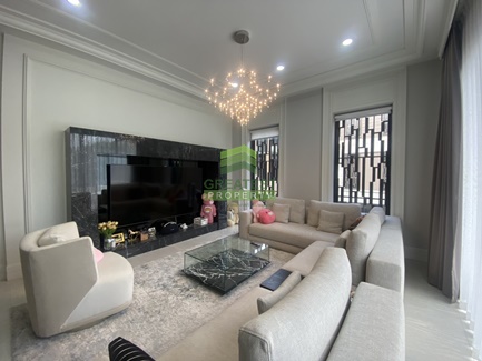 ตกแต่ง : บ้านเดี่ยวหรู 3 ชั้น ระดับLuxury บนพื้นที่ใช้สอย 420 ตร.ม บ้านเลขที่สวย เลขมังกร หลังมุม มี 4 ห้องนอน (แอร์ทุกห้อง), 5 ห้องน้ำ (ห้องน้ำในตัวทุกห้อง), 1 ห้องครัวไทย และ ครัวฝรั่งชั้น2 , 1 ห้องรับแขก , 1 ห้องแม่บ้าน + ห้องน้ำส่วนตัว จำนวนพื้นที่จอดรถ 4 คัน ตัวบ้านมีลิฟต์ พร้อมติดตั้ง solar cell 10kw (ช่วยประหยัดค่าไฟต่อเดือนได้หลายพันบาท) ตัวบ้านออกแบบสวย จัดสรรพื้นที่ใช้สอยได้อย่างลงตัว เหมาะกับทุกคนในครอบครัว