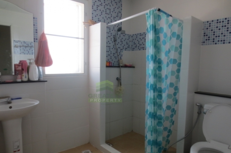 ตกแต่ง : พื้นชั้นล่าง ปูด้วยกระเบื้องการ์เน็ตโต้ ขนาด 60x60 ซม. สวยงาม ทนทาน แข็งแรง ชั้นบนปูลามิเนต หน้าบ้านกว้าง 6.2 เมตร ต่อเติมด้านหน้าโรงรถ และด้านหลังบ้านเรียบร้อย จัดวางพื้นที่ใช้สอยได้ลงตัว สภาพใหม่ พร้อมอยู่