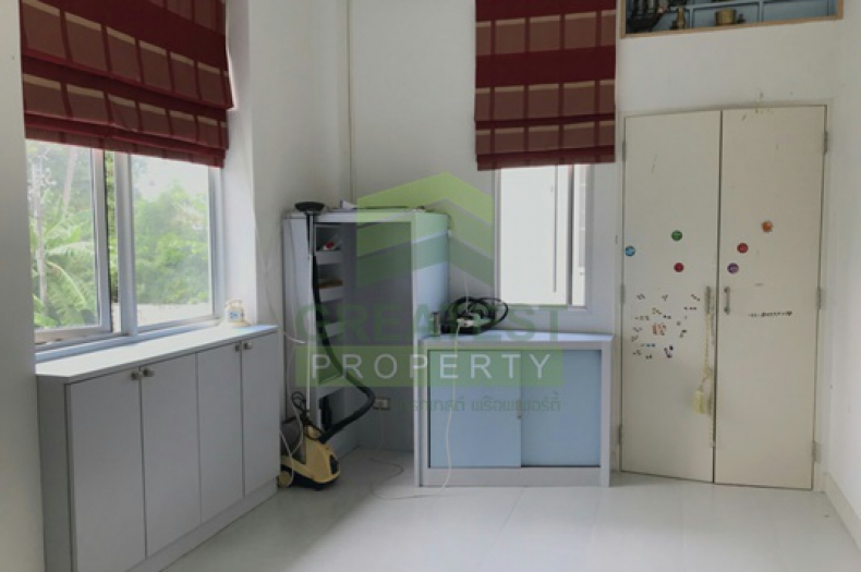 ประเภททรัพย์สิน : บ้านเดี่ยว 2ชั้น มี 3ห้องนอน 2ห้องน้ำ 1ห้องครัว 1ห้องโถง 1ห้องทำงาน 4 แอร์ 3จอดรถ