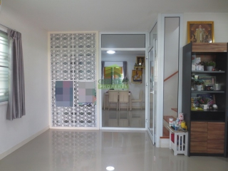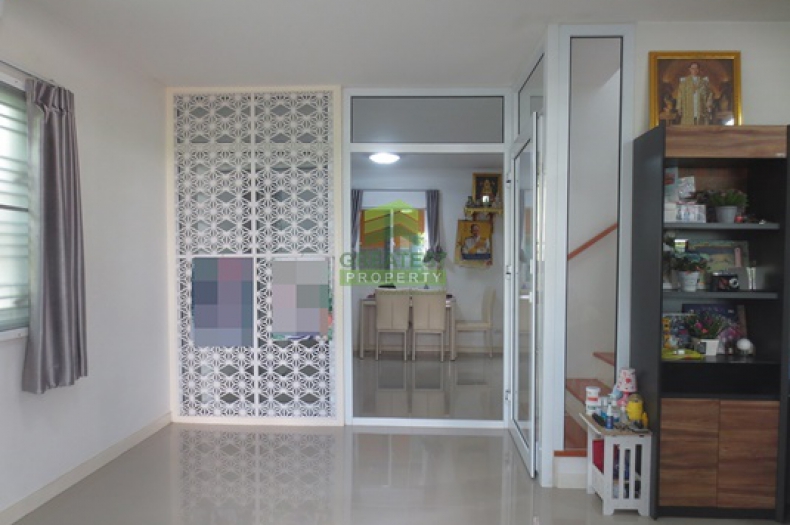 ราคาขาย : 3,900,000 บาท เหลือเพียง 3,500,000 บาท ตกแต่ง : บ้านแฝด 2 ชั้น เป็นบ้านใหม่ พื้นชั้นล่างปูกระเบื้องแกรนิตโต้ ขนาด 60x60 cm. ชั้นบนพื้นลามิเนต ต่อเติมหลังคาโรงจอดรถ พร้อมปูพื้นกระเบื้องเรียบร้อย สวยงาม ภายในตกแต่งกั้นห้องกระจกแยกเป็นสัดส่วน ระหว่างห้องนั่งเล่น, ห้องรับประทานอาหาร และบันไดทางขึ้นชั้น 2 ด้านหลังต่อเติมครัวยาวตลอดความกว้างของตัวบ้าน พร้อมเคาน์เตอร์ครัว พื้นที่ใช้สอยและแบบบ้าน เป็นแบบที่สวยงาม มีพื้นที่ใช้สอยมากถึง 153 ตร.ม ซึ่งเป็นไซร์ที่ใหญ่ที่สุดของบ้านแฝด และมีเพียง 9 หลังในโครงการเท่านั้น