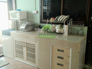 ตกแต่ง : บ้านเดี่ยว 2 ชั้น พื้นที่ใช้สอย 250 ตร.ม ต่อเติมโครงหลังคาพื้นที่จอดรถหน้าบ้านและมุมนั่งเล่นข้างบ้าน, ต่อเติมห้องครัว เคาเตอร์ตู้-อ่างซิ้งค์ พื้นที่ใช้สอยกว้าง พื้นบ้านปูกระเบื้องหินอ่อน ทำความสะอาดง่าย ชั้นบนพื้นไม้ปาร์เก้ บันไดไม้ หน้าต่าง-ประตูกระจกบานเลื่อนใหญ่ พร้อมติดเหล็กดัด มุ้งลวด ผ้าม่าน สวยงาม น่าอยู่ หน้าบ้านหันทิศเหนือ