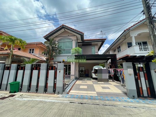 ประเภททรัพย์สิน : บ้านเดี่ยว 2 ชั้น มี 3 ห้องนอน, 3 ห้องน้ำ, 1 ห้องครัว, 1 ห้องนั่งเล่น, 3 แอร์, 2 ที่จอดรถ