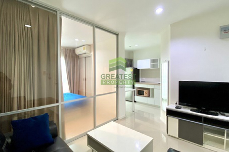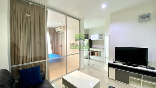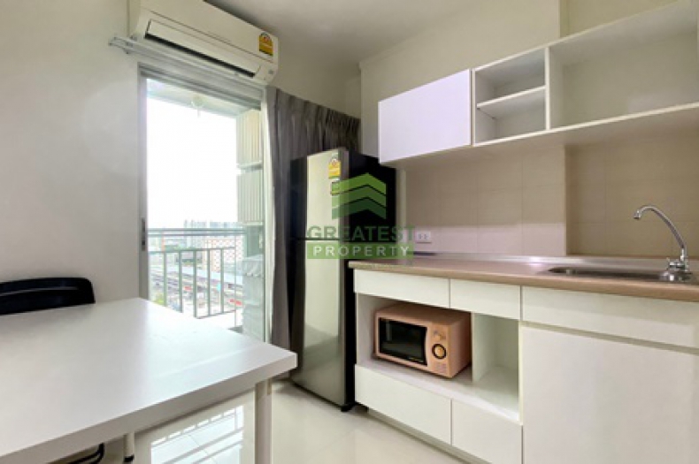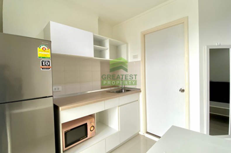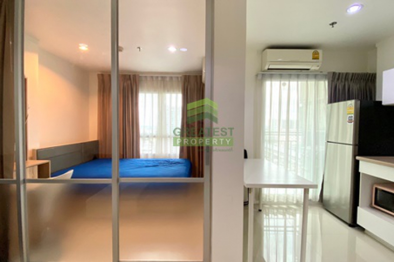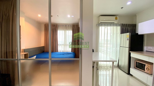 ตกแต่ง : คอนโด High-Rise พร้อมอยู่ ตอบโจทย์ทุกไลฟ์สไตล์ รายล้อมด้วยพื้นที่สีเขียว เหมาะแก่การพักผ่อน ห้องแบบ Living Area พื้นกระเบื้องแกรนิตโต้ จัดสรรพื้นที่ใช้สอยได้อย่างลงตัวทุกมุม กั้นห้องนอนเป็นสัดส่วนด้วยประตูกระจกบานเลื่อน ตู้เสื้อผ้าบิ้วอินท์ พร้อมโต๊ะเครื่องแป้ง เตียงนอน, ที่นอน สามารถชมวิวได้จากภายในห้องนอน ติดม่านกรองแสง ครัวบิ้วอินท์ พร้อมเครื่องใช้ไฟฟ้า ตู้เย็น ไมโครเวฟ เครื่องซักผ้า ทีวี ชั้นวางทีวี ชุดรับแขก โต๊ะรับประทานอาหาร ภายในห้องเรียบร้อย เจ้าของดูแลห้องอย่างดี พร้อมอยู่