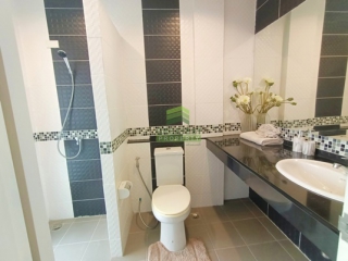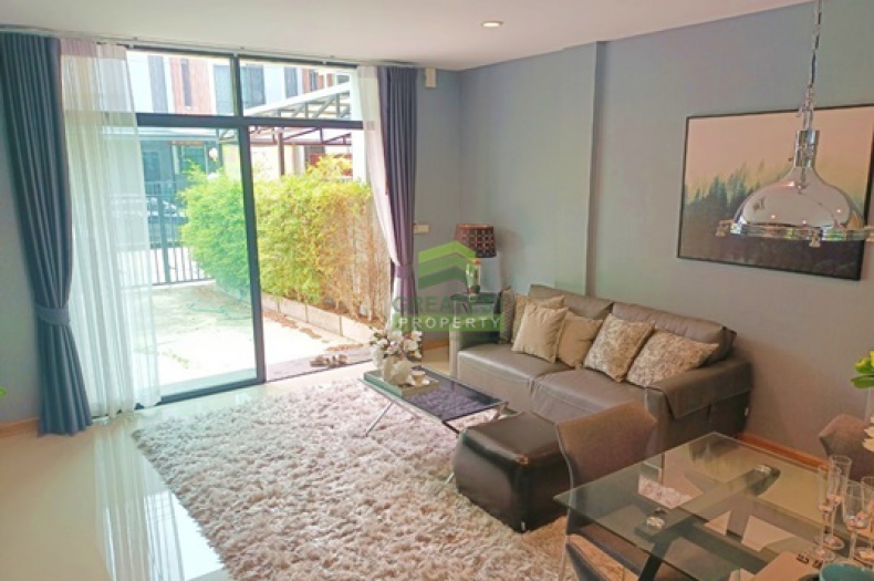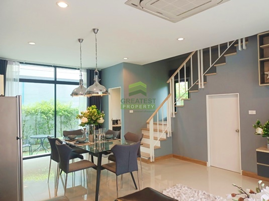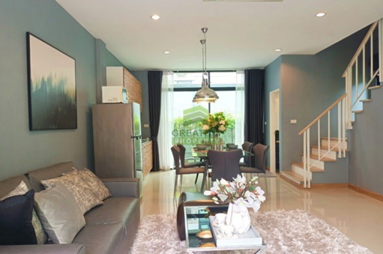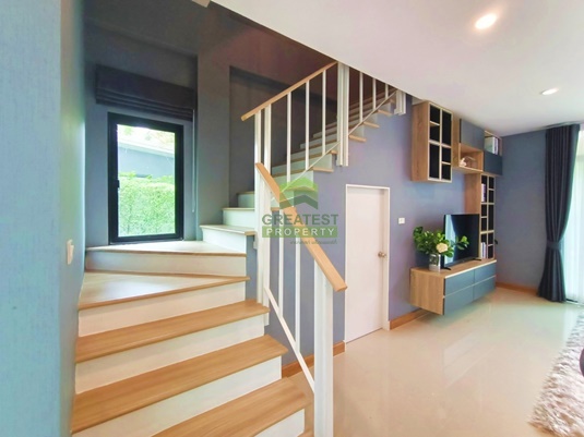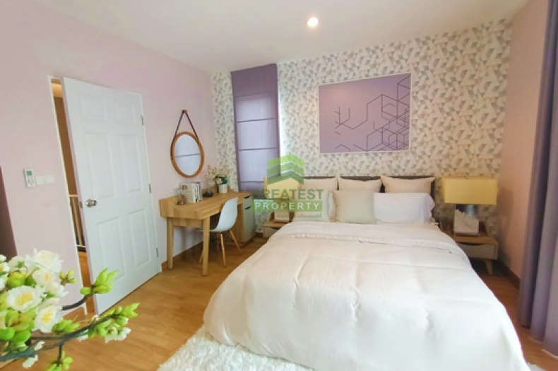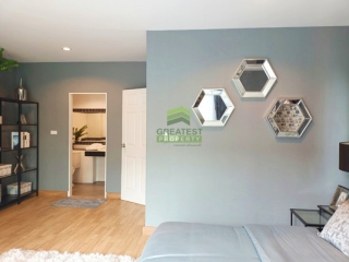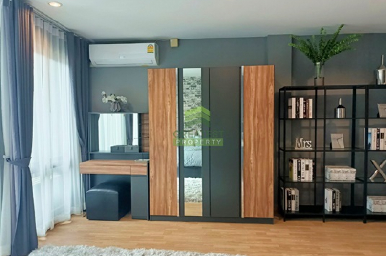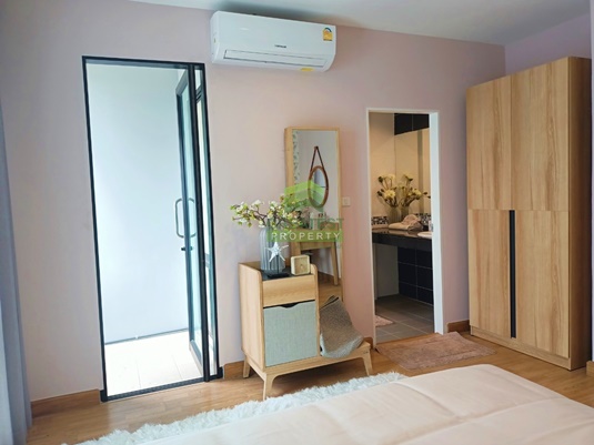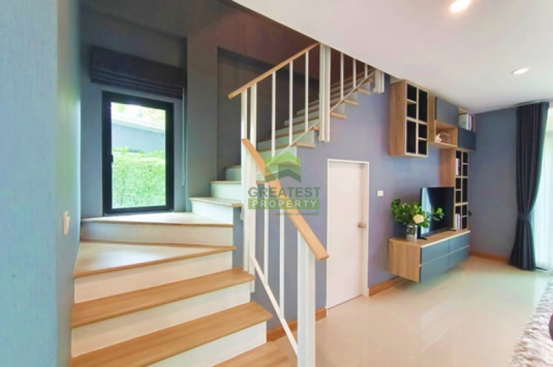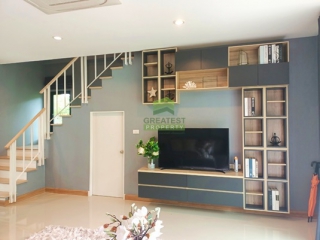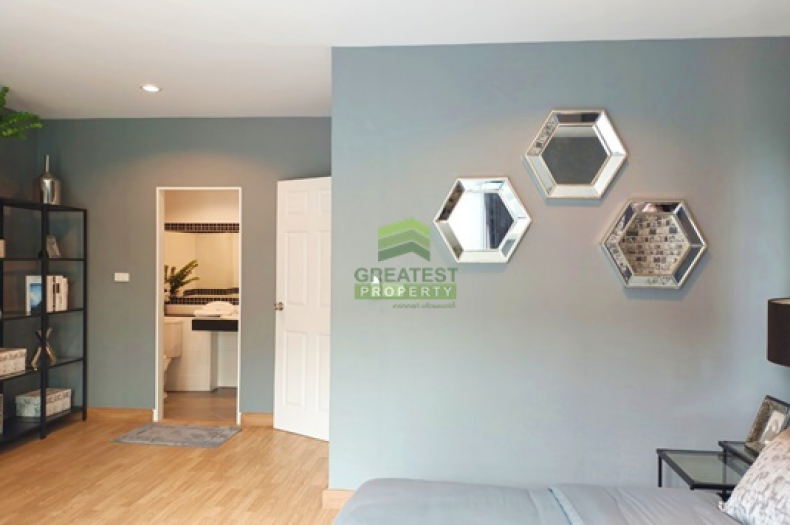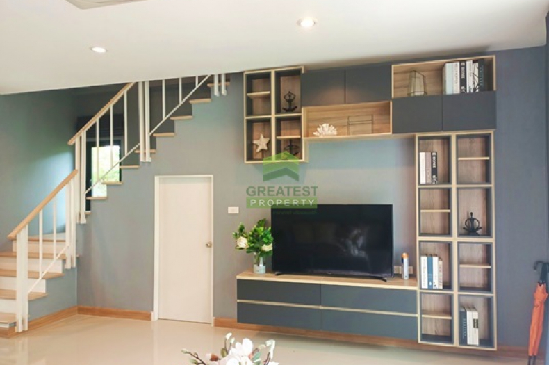 ตกแต่ง : ทาวน์โฮม 3 ชั้น สร้างใหม่ แปลงมุม ตกแต่งสไตล์โมเดิร์น ออกแบบพื้นที่ใช้สอยได้อย่างลงตัว ห้องนอนกว้าง บิ้วอินท์ห้องนอน ตู้เสื้อผ้า โต๊ะเครื่องแป้ง ชั้นวางของ มีหน้าต่าง ห้องน้ำในตัวทุกห้อง มีห้องนั่งเล่นชั้น 2 โถงบันไดโปร่ง โล่ง สว่าง บันไดราวเหล็ก พื้นไม้ ครัวบิ้วอินท์ อ่างซิ้งค์ล้างจาน ตู้แขวนเก็บอุปกรณ์ บิ้วอินท์ห้องนัั่งเล่น, ตู้โชว์ , ห้องทำงาน, ชั้นวางทีวี, พร้อมเครื่องใช้ไฟฟ้า, เฟอร์นิเจอร์ ติดม่านกรองแสง 2 ชั้น มีพื้นที่บริเวณบ้าน
