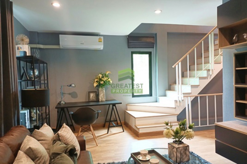 ประเภททรัพย์สิน : ทาวน์โฮม 3 ชั้น มี 3 ห้องนอน, 4 ห้องน้ำ, 1 ห้องครัว, 1 ห้องนั่งเล่น, 1 ห้องทำงาน, 5 แอร์, 1 ที่จอดรถ