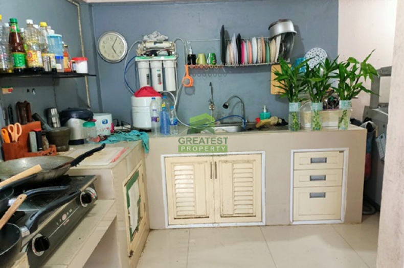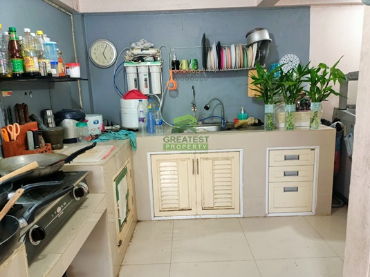 ตกแต่ง : บ้านเดี่ยว 1 ชั้นครึ่ง ต่อเติมห้องใต้หลังคา พื้นลามิเนต ปรับเป็นห้องนอนเด็กหรือห้องเอนกประสงค์ได้ ชั้นล่างพื้นหินอ่อน ต่อเติมห้องครัว ติดตู้ เคาน์เตอร์ อ่างซิ้งค์ ห้องครัวมีประตูเชื่อมออกพื้นที่ใช้สอยข้างบ้านได้ ห้องโถงกว้างสามารถแบ่งพื้นที่ใช้สอยได้อีก 1 ห้อง หน้าบ้านมีมุมนั่งเล่น และบริเวณบ้านสามารถปลูกพืชผักสวนครัว หรือจัดสวนหย่อมได้ จอดรถในบ้านได้ 1 คัน