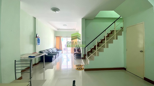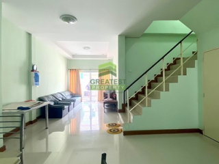ตกแต่ง : ทาวน์โฮม 2 ชั้น พื้นที่ใช้สอย 143 ตร.ม มี 4 ห้องนอน, 2 ห้องน้ำ, 1 ห้องครัว, 1 ห้องโถงนั่งเล่น, 1 ห้องเก็บของใต้บันได พื้นกระเบื้องแกรนิตโต้ขนาด 60x60 cm.ทั้งหลัง ห้องนอนชั้นบนมีระเบียงหน้าบ้านสำหรับนั่งรับลม พักผ่อนได้ ตัวบ้านชั้นบนมีชั้นลอยห้องพระ หรือสามารถจัดสรรพื้นที่ใช้สอยได้ตามต้องการ ต่อเติมหลังคาหลังบ้านเต็มพื้นที่ สำหรับเป็นพื้นที่ซักล้าง หน้าบ้านพื้นเทปูนเต็มพื้นที่ ติดมุ้งลวด,ผ้าม่าน บ้านพร้อมอยู่