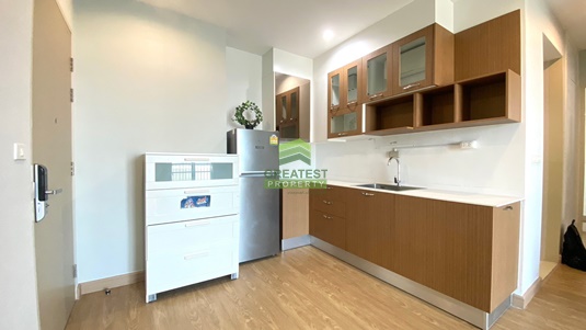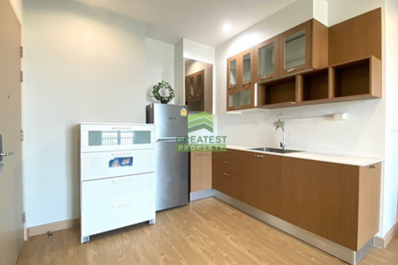 ตกแต่ง : ห้องชุด ชั้น 7 พื้นลามิเนตลายไม้ เฟอร์นิเจอร์บิ้วท์อิน เคาน์เตอร์ครัว เตาไฟฟ้า อ่างซิ้งค์ล้างจาน จัดสรรพื้นที่ใช้สอยได้อย่างลงตัว สวยงาม ห้องน้ำแยกโซนอาบน้ำด้วยตู้กระจกอาบน้ำ ผ้าม่านกรองแสง ระเบียงและพื้นที่ซักล้าง ห้องสวย สะอาด เรียบร้อย พร้อมอยู่