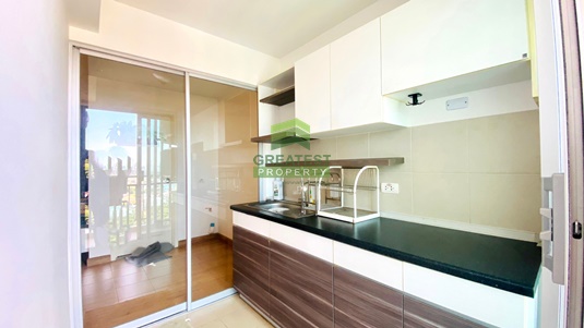 ตกแต่ง : ห้องชุด ชั้น 12A ตึก East เนื้อที่ 44.01 ตร.ม พื้นลามิเนต กั้นห้องนอนด้วยกระจกเป็นสัดส่วน เฟอร์บิ้วท์อินทั้งห้อง ห้องโล่ง โปร่ง อากาศถ่ายเทดี วิวเมือง