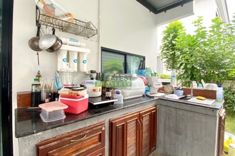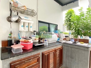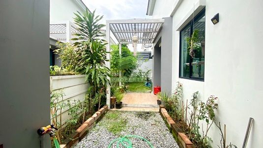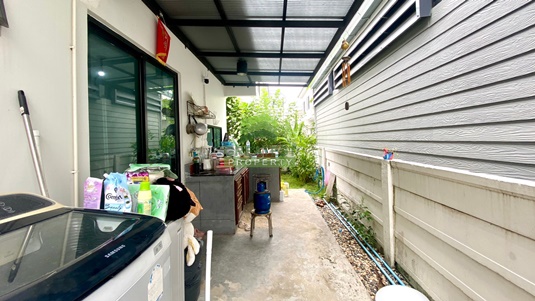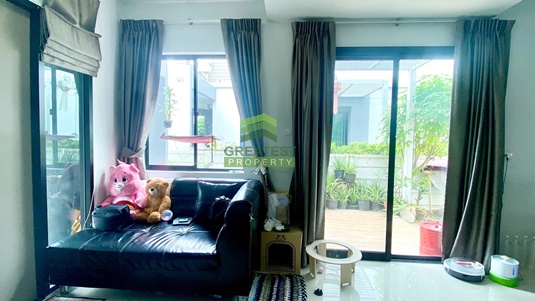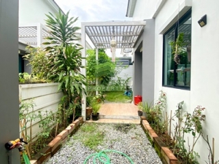 ตกแต่ง : บ้านเดี่ยว 2 ชั้น ชั้นล่างพื้นกระเบื้องแกรนิตโต้ขนาด 60x60 cm. จัดสรรพื้นที่ใช้สอยได้อย่างลงตัว แบ่งเป็นห้องนั่งเล่น, ห้องรับประทานอาหาร, ห้องทำงาน ด้านหลังต่อเติมเคาน์เตอร์ครัว อ่างซิ้งค์ล้างจาน บันไดไม้เนื้อแข็งอย่างดี ชั้นบนพื้นลามิเนต ห้องนอนใหญ่เป็นประตูบานเลื่อนสไลด์ ต่อเติมระเบียงห้องให้กว้างขึ้น สามารถจัดเป็นมุมนั่งเล่น พักผ่อน รับลมได้ดี บริเวณบ้านร่มรื่น แต่งสวนสวย บ้านสวย เจ้าของดูแลอย่างดี พร้อมอยู่