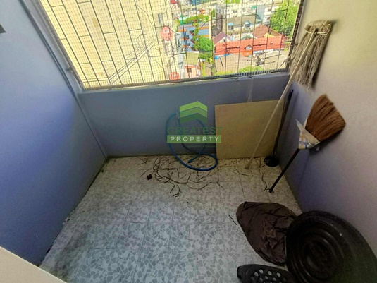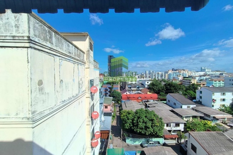 ประเภททรัพย์สิน : คอนโดมิเนียม 7 ชั้น อยู่ชั้นที่ 7 มี 1 ห้องนอน, 1 ห้องน้ำ, 1 ห้องนั่งเล่น, 1 แอร์, ระเบียง