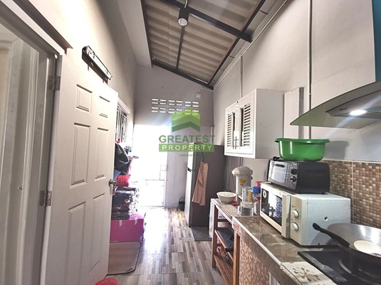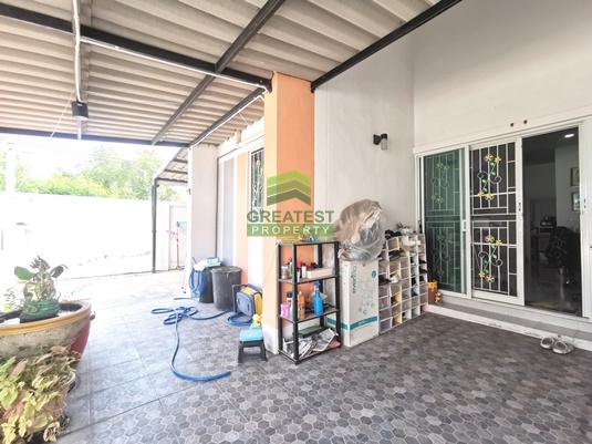 ตกแต่ง : ทาวน์โฮม ชั้นเดียว แปลงริม พื้นกระเบื้องแกรนิตโต้ ต่อเติมหลังคา เทปูนรอบบ้าน ต่อเติมครัวหลังบ้าน บิ้วอินท์เคาน์เตอร์ครัว อ่างซิ้งค์ล้างจาน บ้านสวย ใหม่ พื้นที่ใช้สอยเยอะ สามารถต่อเติมเพิ่มพื้นที่ใช้สอยได้อีก