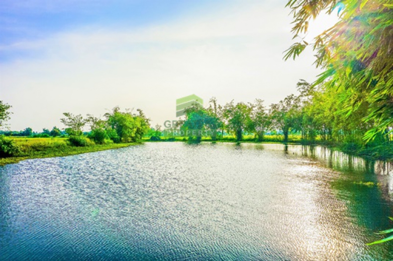 ตกแต่ง : ที่ดินเปล่าเป็นกระทงนา เกษตรผสมผสาน มีบ่อเก็บน้ำ 2 บ่อ, คูน้ำ สวนไผ่รอบบ่อ เหมาะทำเกษตรผสมผสาน โคกหนองนา