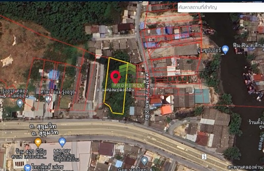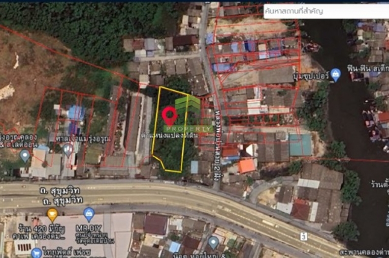 ขายที่ดินคลองด่าน บางบ่อ สมุทรปราการ เนื้อที่ 1 ไร่ 2 งาน 30 ตารางวา ถูกกว่าราคาประเมิน ทำเลดี ติดถนนสุขุมวิท