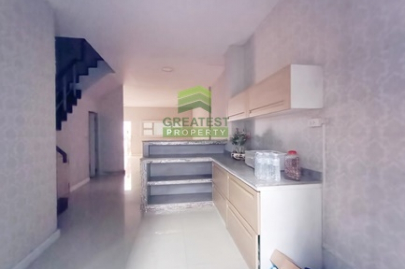 ตกแต่ง : ทาวน์โฮม 3 ชั้น ชั้นล่างพื้นกระเบื้องแกรนิตโต้ บริเวณโถงชั้นล่างใกล้บันไดแต่งเคาน์เตอร์บาร์ ตู้เก็บอุปกรณ์ มีห้องครัวหลังบ้าน ติดตั้งเคาน์เตอร์ อ่างซิ้งค์ล้างจาน ตู้เก็บอุปกรณ์ เครื่องดูดควัน และแบ่งเป็นพื้นที่ซักล้าง ชั้น 2-3 ปูพื้นลามิเนตทุกชั้น ติดวอลล์เปเปอร์ ผ้าม่าน ชั้น2-3 มีระเบียงหน้าบ้าน บ้านแต่งสวย พร้อมอยู่อาศัย