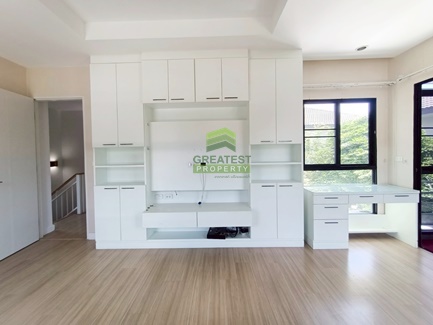 ราคาขาย : 8,700,000 บาท เหลือเพียง 7,800,000 บาท ตกแต่ง : บ้านเดี่ยว 2 ชั้น พื้นที่ใช้สอย 162 ตร.ม หน้าบ้านหันทิศใต้ พื้นชั้นล่างปูกระเบื้องแกรนิตโต้สีครีมทำความสะอาดง่าย บิ้วท์อินเคาน์เตอร์บาร์ ตู้เก็บของพร้อม storage bench อย่างลงตัว สำหรับมุมนั่งเล่น และมุมโต๊ะอาหาร ครัวบิ้วอินท์สวย พร้อมใช้งาน ไม่ว่าจะเป็นเคาน์เตอร์ครัว ซิงค์ล้างจาน ตู้แขวนเก็บอุปกรณ์ เตาไฟฟ้า เครื่องดูดควัน เครื่องกรองน้ำ ชั้นบนพื้นลามิเนต บันไดพื้นไม้จริง สวย แข็งแรง ห้องนอนใหญ่ตกแต่งบิ้วท์อิน ตู้โชว์ชั้นวางทีวี โต๊ะเครื่องแป้ง ตู้เสื้อผ้า แบ่งโซนห้องแต่งตัว ทุกห้องติดวอลเปเปอร์ลวดลายเบาบางสีอ่อนสบายตา บ้านโล่ง โปร่ง ไม่ร้อน มีหน้าต่างทุกห้อง อากาศถ่ายเทดี ต่อเติมหลังคา-ปูกระเบื้องพื้นที่จอดรถหน้าบ้าน บริเวณบ้านร่มรื่น ด้วยต้นไม้น้อยใหญ่ บ้านสวย แต่งครบ พร้อมอยู่