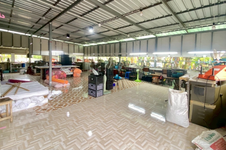 ประเภททรัพย์สิน : ที่ดินพร้อมสิ่งปลูกสร้าง บ้านเดี่ยว โรงงาน 2 ชั้น มี 6 ห้องนอน 5 ห้องน้ำ, 1 ห้องครัว, 5 แอร์, ที่จอดรถ, โรงงาน, คลังสินค้า