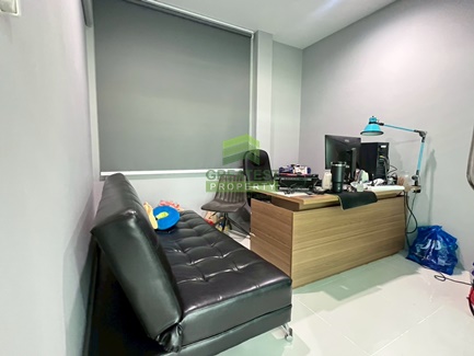 ตกแต่ง : ตึกสำนักงาน 2 ชั้น พื้นที่ใช้สอย 288 ตร.ม ตกแต่งด้วยฟังก์ชันเรียบหรู เหมาะแก่การทำงาน ด้วย 1 ห้องประชุมใหญ่ 4 ห้องทำงาน 1 ห้องโถงรับแขก 1 ห้องรับประทานอาหาร 1 ห้องครัว 5 ห้องน้ำ 2 ห้องเก็บของ และ 1 ห้องแม่บ้าน พื้นกระเบื้องแกรนิตโต้ทั้งหลัง กระจกเขียวตัดแสง ม่านปรับแสง ไม่ร้อน ตัวอาคารโปร่ง โล่ง อากาศถ่ายเทดี วางระบบ LAN/ไฟฟ้าภายในอาคาร ฟรีแอร์มากถึง 9 ตัว พร้อมระบบโซล่าเซลล์ขนาด 10 KW. ช่วยประหยัดไฟได้มากสุดๆ พร้อมบริการฉีดปลวกรายปี ประตูรั้วไฟฟ้า และประตูเล็ก มีมุมติดป้ายชื่อสำนักงานชัดเจน พร้อมสวนสวย มุมนั่งเล่น