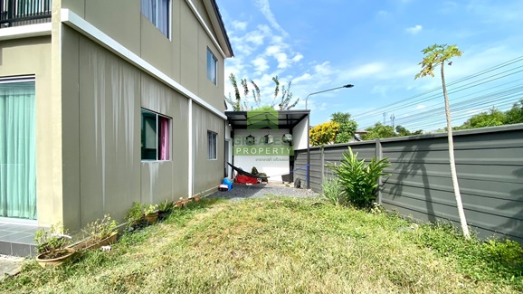 ตกแต่ง : ทาวน์โฮม 2 ชั้น แปลงมุม พื้นที่ใช้สอย 93 ตร.ม ชั้นล่างพื้นกระเบื้องแกรนิตโต้ ขนาด 60X60 cm. มี 1 ห้องโถงใหญ่, 1 ห้องน้ำ, 1 ห้องครัวต่อเติมหลังบ้าน และพื้นที่ซักล้าง, 1 ห้องเก็บของใต้บันได ชั้นบนพื้นกระเบื้องแกรนิตโต้ บันไดไม้ประสานสีสวย มี 2 ห้องนอน, 1 ห้องเอนกประสงค์, 1 ห้องน้ำ หน้าบ้านกว้าง 5.7 เมตร จัดสรรพื้นที่ใช้สอยได้อย่างลงตัว พื้นที่ใช้สอยเยอะ และมีพื้นที่เหลือข้างบ้าน สามารถต่อเติมเพิ่มพื้นที่ใช้สอยได้อีก หรือจัดสวน ปลูกต้นไม้ พืชผักสวนครัว มุมนั่งเล่น กิจกรรมสันทนาการต่างๆได้